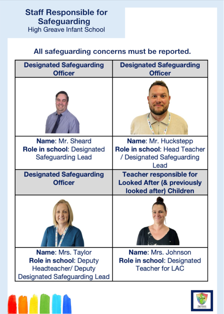 If you are ever concerned about the safety or well‐being of someone at our school please talk to one of the school’s Designated Safeguarding Lead s (DSLs) shared below.