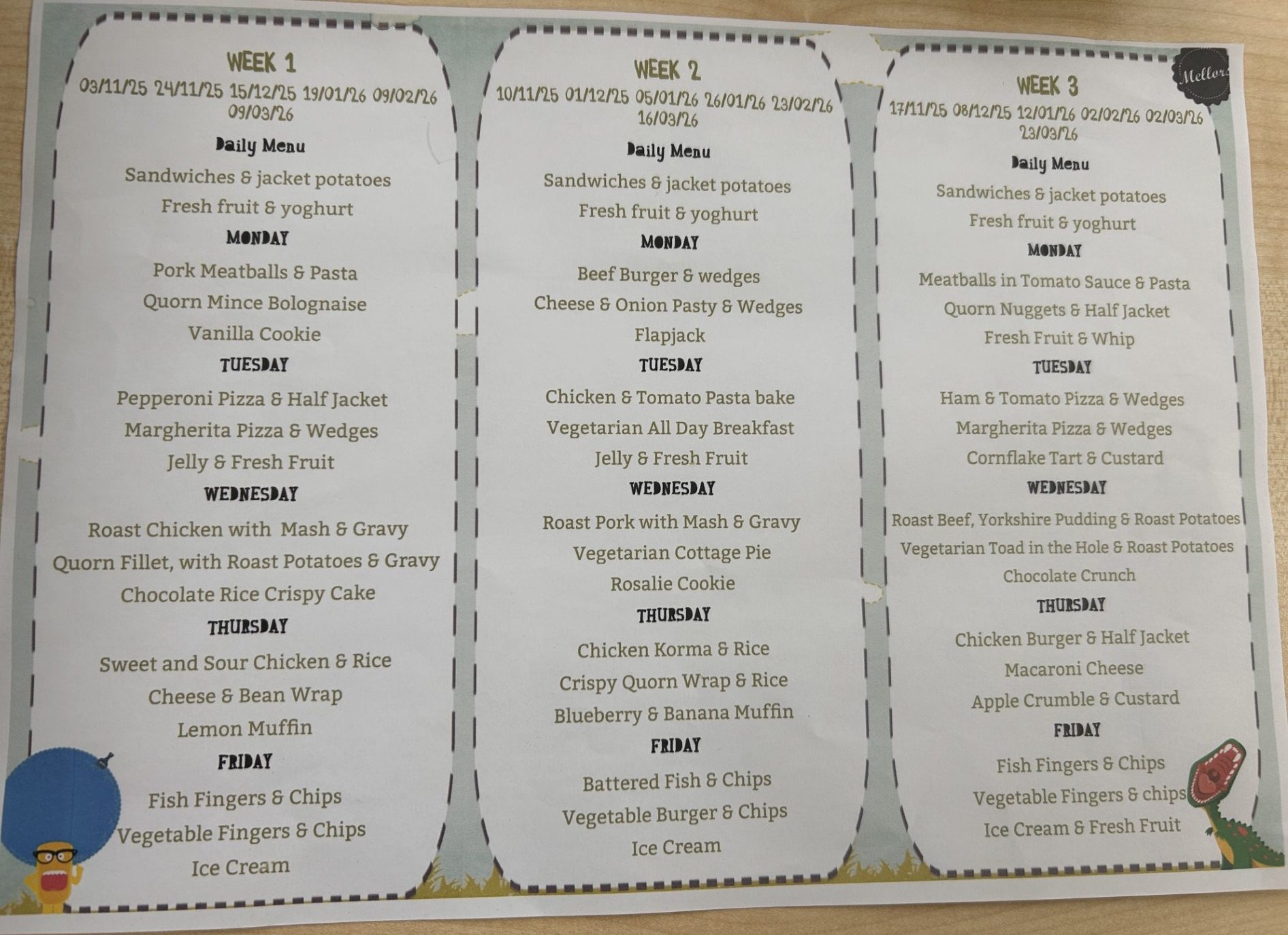 School Dinner Menu’s